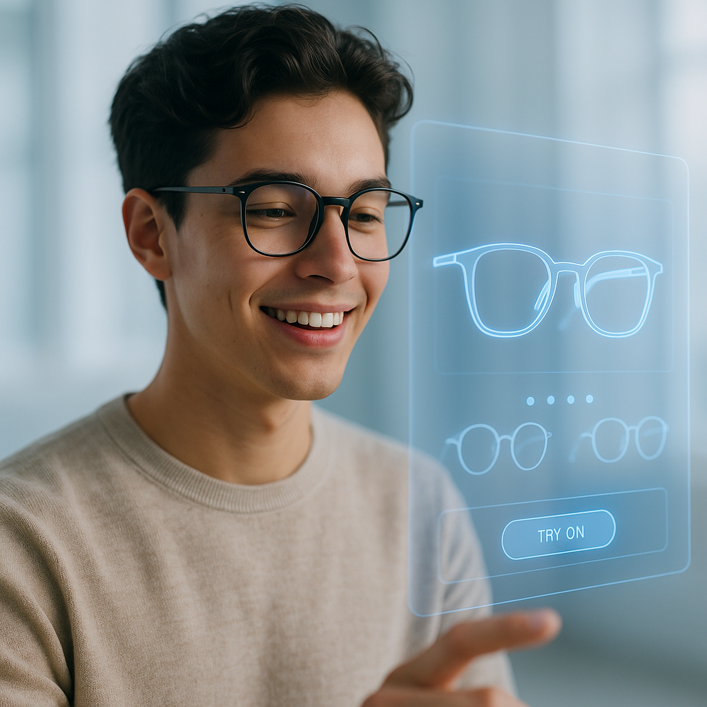 Grâce à notre technologie Virtual Try-On, vous pouvez essayer vos lunettes directement depuis votre caméra, sans installer d’application.