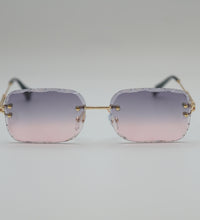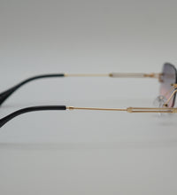 Lunettes de soleil mixtes, couleur doré verres degradés violet/rose, monture metal percés, verres categorie 2