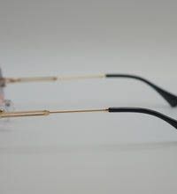 Lunettes de soleil mixtes, couleur dore verres violets, monture metal percé, verres categorie 2