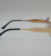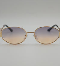 Lunettes de soleil femme, couleur doré verres degradé violet jaune, monture metal, verres categorie 2