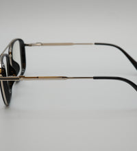 Lunettes optiques homme, couleur bicolore dore/argente, monture metal percé, branches flexibles